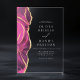 A chic and modern wedding invitation featuring a stunning pink and gold agate design. Printed on premium acrylic, this invitation combines elegance with contemporary style. The soft pink hues paired with luxurious gold accents create a sophisticated and timeless aesthetic, making it the perfect choice for a stylish and memorable wedding celebration.