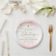 Modern Pink Gold Cross Girl Christening Paper Plate
