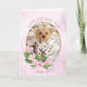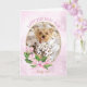 Happy Birthday from the dog. Personalize this cute custom birthday card with your precious puppy dog's photo in the gold oval frame adorned with pink magnolia flowers over a pink floral background. The inside reads 'Happy Birthday! (my food dish is empty)'. Your dog's name appears on the front and again on the inside food dish and as the signature above a paw print.