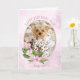 Modern Pink Gold Floral Wreath Dog Photo Birthday Card