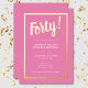 Celebrate in style with our modern and elegant invitation. A vibrant pink background is accented with a dazzling real gold foil "Forty!" heading and a luxurious gold foil frame that surrounds your chic party details. Simple, sophisticated, and perfect for the milestone birthday. Created by Simply Farmhouse Press.