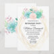 A retirement party invitation with an elegant faux gold foil frame. A pastel colour watercolor bouquet at the top. The flowers, leaves and sprigs are pastel pink and green.