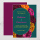 Modern yellow hot pink green floral wedding Invitation. Make a bold and vibrant statement with this modern yellow, hot pink, and green floral wedding invitation, set against a striking green turquoise background. Featuring a lively mix of tropical-inspired florals in vivid hues, this design blends contemporary elegance with playful charm. The rich turquoise backdrop enhances the bright blooms, creating a fresh and stylish look perfect for spring and summer weddings. With sleek typography and a modern layout, this invitation is ideal for couples looking to add a fun, colourful, and sophisticated touch to their wedding celebration.