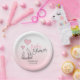 Modern Pink Grey Blue Elephant GIRL Baby Shower Paper Plate
