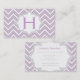 Modern purple, grey, ivory chevron pattern monogram personalised business card. There is a frame with your monogram in the centre. A stylish zig zag design using the classic stripes with contemporary yet vintage look in a sense. You can change background -purple- and monogram colour choosing from over 200 colours from Zazzle colour chart. Elegant, classy and sophisticated design that can be used as personal business cards or for many types of business such as Interiors, crafters, stylists.