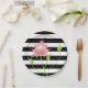 Modern Pink Lotus Floral Stripes Paper Plate