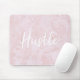 Custom-designed motivational mouse pad featuring feminine and stylish pink marble design with "Hustle" written in modern hand brush script.