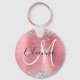 Modern Pink Ombre Foil Silver Glitter Monogram Key Ring