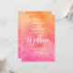 A modern hand painted pink orange vibrant summer sunset watercolor ombre wedding script typography birthday party invitation.
