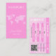 Modern Passport Travel Agency Glitter Gold World Map Boarding Pass Business Card with pink background for makeup artist, lash extension, event planner, travel agent, hair stylist, nail artist