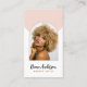 Simple and elegant, this beautifully feminine business card with a modern arch shaped photo template that works well for the beauty industry or other professions serving women, i.e. hair and makeup artist, fashion boutique, spa, salon and more. Your photo is bordered at the top with a soft rounded shape in blush pink. All of the text may be personalised with the business info you wish to include. A section is included on the back of the card for including your social media info. If you need to move things around, you can select the blue bar at the bottom of the design template indicating "Edit using Design Tool". This will open the Zazzle Design Tool and allow you to see all the layers of text and graphic elements on the card and make additional edits.