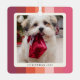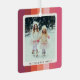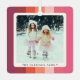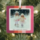Christmas holiday keepsake ornament featuring 2 of your photos against a chic purple, pink and orange striped background. You can personalise a line of text on each side of the ornament.