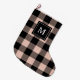 Modern Pink Plaid & Name Large Christmas Stocking