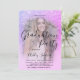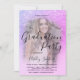 A modern, pretty faux pink purple glitter shower ombre with pink colour block graduation party invitation with your custom photo with glitter ombre pattern fading onto a pink background.