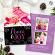 Modern Pink Purple Peace and Joy Snowflake Photo Holiday Card
