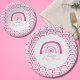 Modern pink rainbow baby shower paper plate