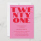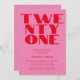 Modern 21st birthday invitation featuring bold typography and minimalist design in pink red colour.