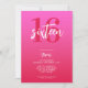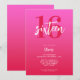 A simple modern 16th birthday invitation featuring elegant calligraphy script typography and minimalist design in pink and red colour.