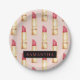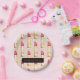 Modern Pink & Red Lipstick Pattern Girly With Name Paper Plate