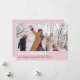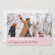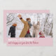 Christmas card personalised with a wide photo. A pink border at the bottom of the holiday card with merry christmas written in chunky but elegant white letters, and a holiday greeting in red brush script.