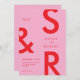 Modern Pink Red Monogram Wedding Invitation. Features bold typography and minimal graphic design. Personalise text with all the details of your special day.
