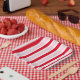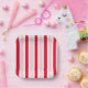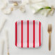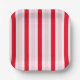 Pink Red Modern Christmas Paper Plates with a classic stripes pattern design. A simple, minimal design perfect for your winter holiday party.
