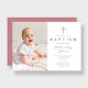 Modern Pink Religious Cross Girl Photo Baptism Invitation