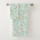Modern Pink Rose Bud Mint Stripe Pattern Bath Towel Set