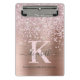 Modern Pink Rose Gold Diamond Glitter Monogrammed Mini Clipboard