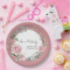 Inspired by a summer rose garden, this graduation paper plates features soft blush roses in a wreath that create a beautiful blend of classic romance and modern typography. An elegant wreath of greenery and pink flowers frames beautifully graduate's name and the year of graduation.