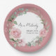 Modern Pink Roses Script Class of Graduation Paper Plate
