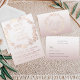 This luxurious RSVP card perfectly complements the rose gold foil invitation, featuring a delicate floral wreath in soft tonal shades of rose gold for added depth and elegance. The refined script and classic serif typography create a timeless look, while the subtle faux metallic detailing enhances the card’s sophisticated feel. Designed for formal and romantic weddings, this reply card offers a polished and cohesive finish to your luxury wedding stationery suite.