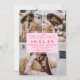 This stylish save the date card features a modern and romantic design, perfect for announcing your special day. The card is divided into four photo slots, allowing you to showcase your 3 favourite engagement pictures or couple moments in a collage format. The central text area is elegantly framed and highlights the essential details of your wedding date in a chic, contemporary font. The hot neon pink accents add a touch of boho luxury, while the pastel retro pink background keeps the overall look clean and sophisticated. Ideal for couples who want to share their love story with a personalised touch, this card is both beautiful and memorable, setting the perfect tone for your upcoming wedding.