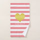 Modern Pink Stripes Pattern Name Bath Towel Set.