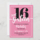 Modern Pink Sweet Sixteen 16th Birthday Party Invitation