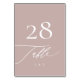 Modern Pink Taupe Calligraphy Wedding Table Number
