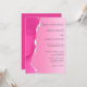 Modern wedding invitation with a modern pink design and elegant, minimalist typography. The left side features a bold pink pattern with a torn-paper effect, while the right side contains the wedding details in formal script. The invitation text includes your names , specifies a date, and placeholders for location and city. The overall look is sophisticated and contemporary, with an emphasis on clean lines and a cheerful, romantic palette.