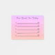 This modern trendy Post It Notes is for listing 5 daily goals on a numbered lined checklist with checkboxes. The background is a sunset vibe with orange and pink gradient ombre design. The script is feminine and can be customised to say any kind of list your choose., Or you could personalise it with a name, such as "Mandy's To Do List". Give as a motivational gift to a woman, mum, teacher or coworker.
