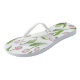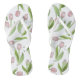 The product design features a pattern of pink tulip flowers. This botanical illustration makes modern chic and unique flip flops for women.