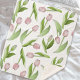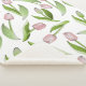 The product design features a pattern of pink tulip flowers. This botanical illustration makes a modern chic and unique Sherpa blanket.