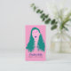 The card features a flat design illustration of a stylish woman with long, wavy turquoise hair, defined brows, and blue lips — a bold yet elegant combination that captures attention instantly. The clean lines, subtle retro-boho vibe, and modern color palette create a distinctive look that perfectly fits the beauty and fashion world.