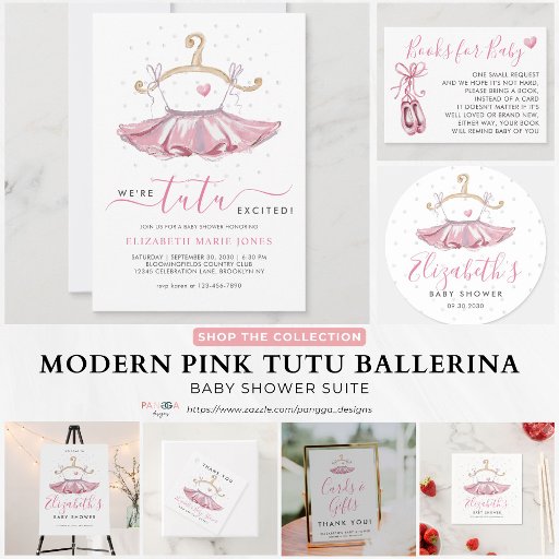 Modern Pink Tutu Ballerina Ballet Girl Baby Shower Invitation