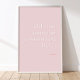 Create your own custom quote wall art in modern trendy pink typography design. Add your own quote. inspirational slogan, song lyric or other personalised text.