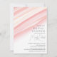 Beautiful bridal shower invitation featuring horizontal ombre pink watercolor stripes on a fresh white background. The back features a coordinating floral back for an extra special touch.