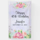 Birthday party banner with a pretty watercolor design. Pink flowers arranged in a beautiful bouquet.