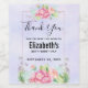 Birthday thank you bottle labels with a pretty watercolor design. Pink flowers arranged in a beautiful bouquet.