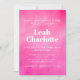 This design sets a confident, joyful tone for a modern Bat Mitzvah celebration. The vibrant pink colour and clean typography feel elevated and meaningful while keeping the focus on the guest of honour. A beautiful choice for families who want something polished, current, and easy to coordinate with the rest of their event details.