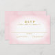 This modern wedding RSVP card features a soft pink watercolor wash on the edges and classic gold type.