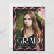 Celebrate your high school or college graduate with this elegant graduation announcement, featuring a full-bleed vertical photo framed by a stylish pink wavy border. "Grad" is displayed in bold white lettering making a statement, while the graduate’s name, school, and class year add a personal touch. The back includes a horizontal photo with space for a custom message, making it the perfect way to share this special milestone with family and friends.
