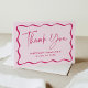 Modern Pink Wavy Frame Photo Graduation Thank You Card